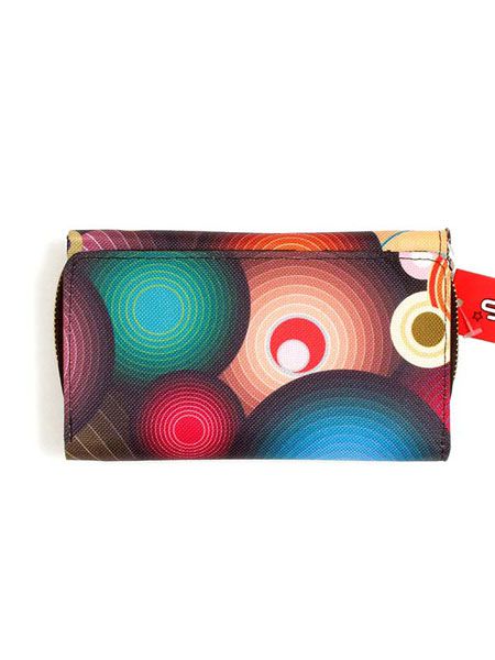 Cartera grande con múltiples compartimentos includo monedero con cremallera y cierre de clip con estampados psicodélicos y retros de 70 up, medida aproximadas 17x8cm