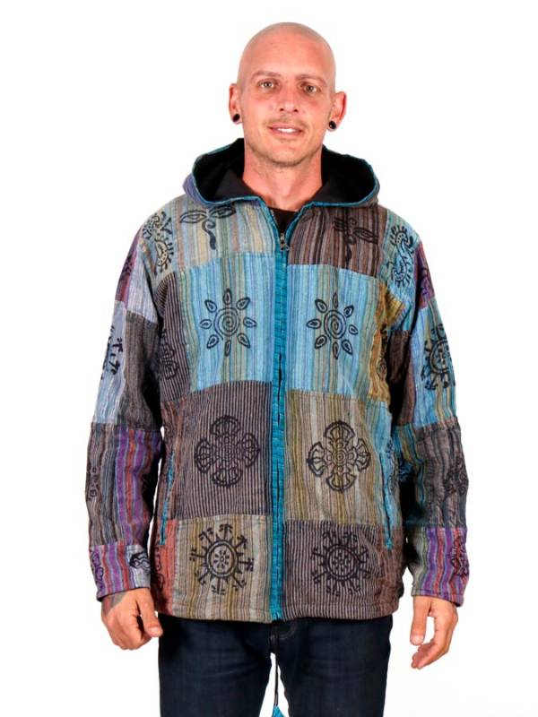 Chaqueta Sudadera de invierno patchoerk de algodón de rayas lavado a la piedra con estampados hippies étnicos con cremallera y bolsillo, capucha con cordón ,con forro interno. ATENCIÓN DISPONIBLE SOLO UNA UNIDAD. Talla única (L)