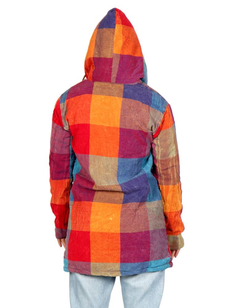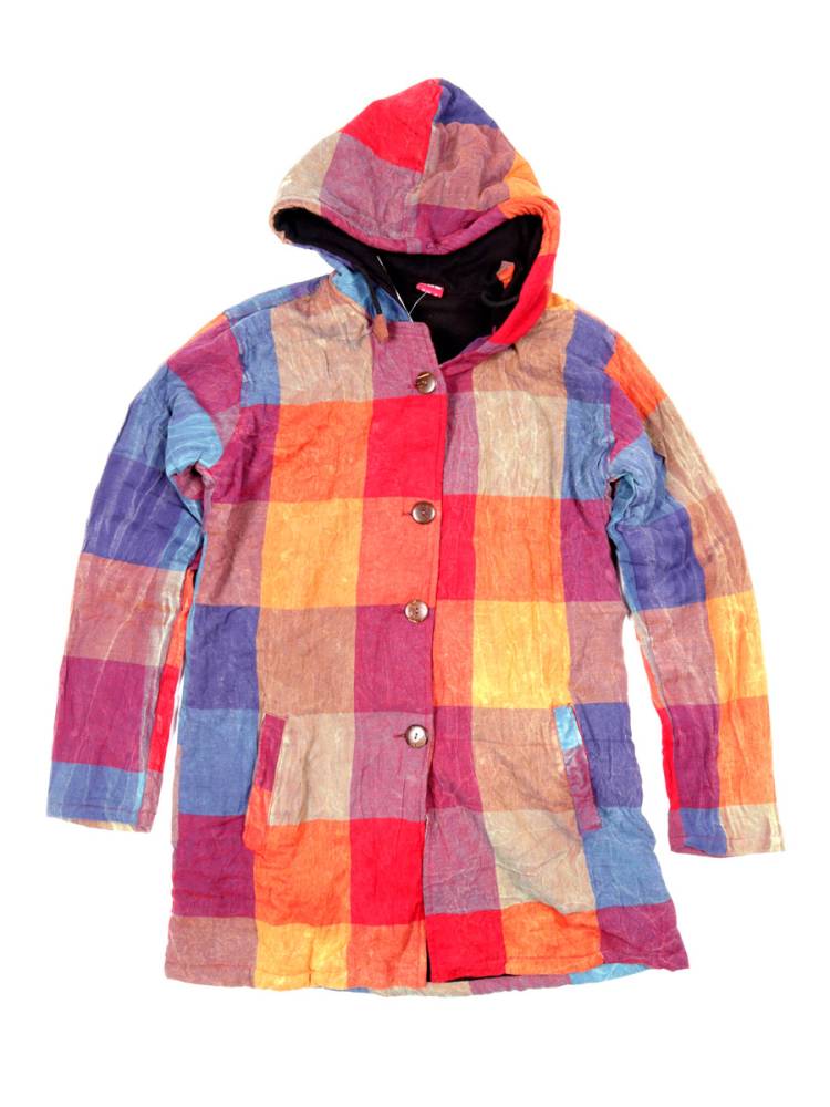 Abrigo colorido de cuadros con efecto lavado a la piedra. Cuenta con forro polar interno para mayor calidez, bolsillos laterales funcionales y capucha integrada. Ideal para un look bohemio y abrigado. eltono de los colores puede variar d elos mostrados son todos diferenteComposición: 100% Algodón.[SKU: CHHC52 ] DISPONIBLE