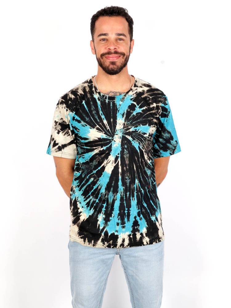 Camiseta 100% algodón base negra teñida con la técnica de Tie dye (teñido con nudos) de calidad estilo espiral . Los colores son sólidos y duraderos. La técnica de teñido Tie Dye es totalmente manual técnicamente no hay dos prendas exactamente iguales por lo que los patrones y colores son aproximados.