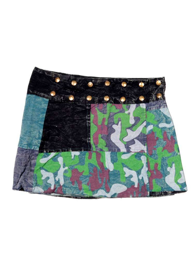 MINIFALDA HIPPIE PATCHWORK CON DETALLES CAMUFLAJE