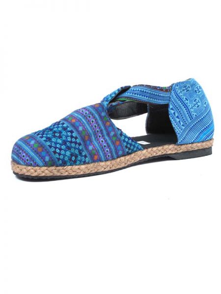 sandalia cerrada étnica colores. zapato tipo menorquina con tira con velcro en el empeine realizada con telas étnicas del norte de tailandia y cáñamos. todas son diferentes, por lo que las combinaciones de modelos y colores pueden variar.